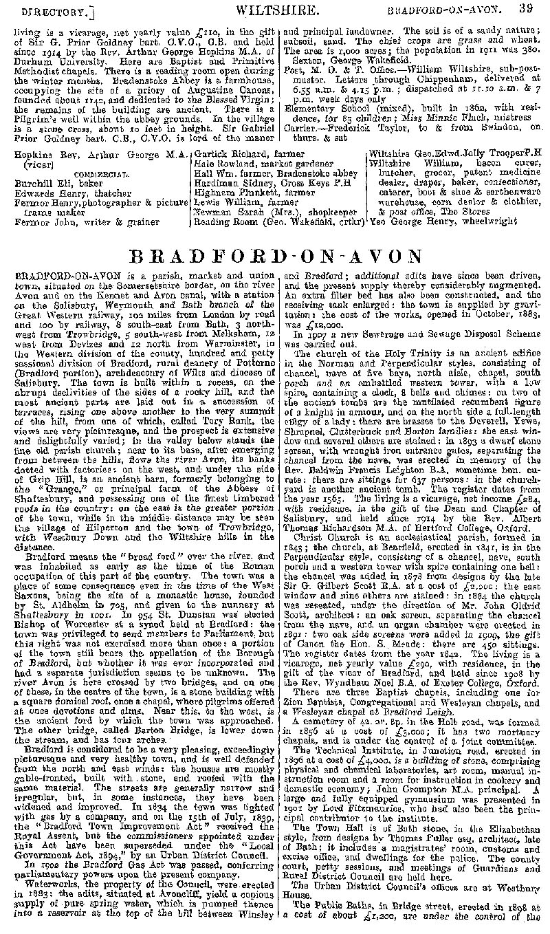 Page 19 Description and residents of Bradenstoke-cum-Clack. Bradford on Avon; setting, history, Holy Trinity Church, public buildings.