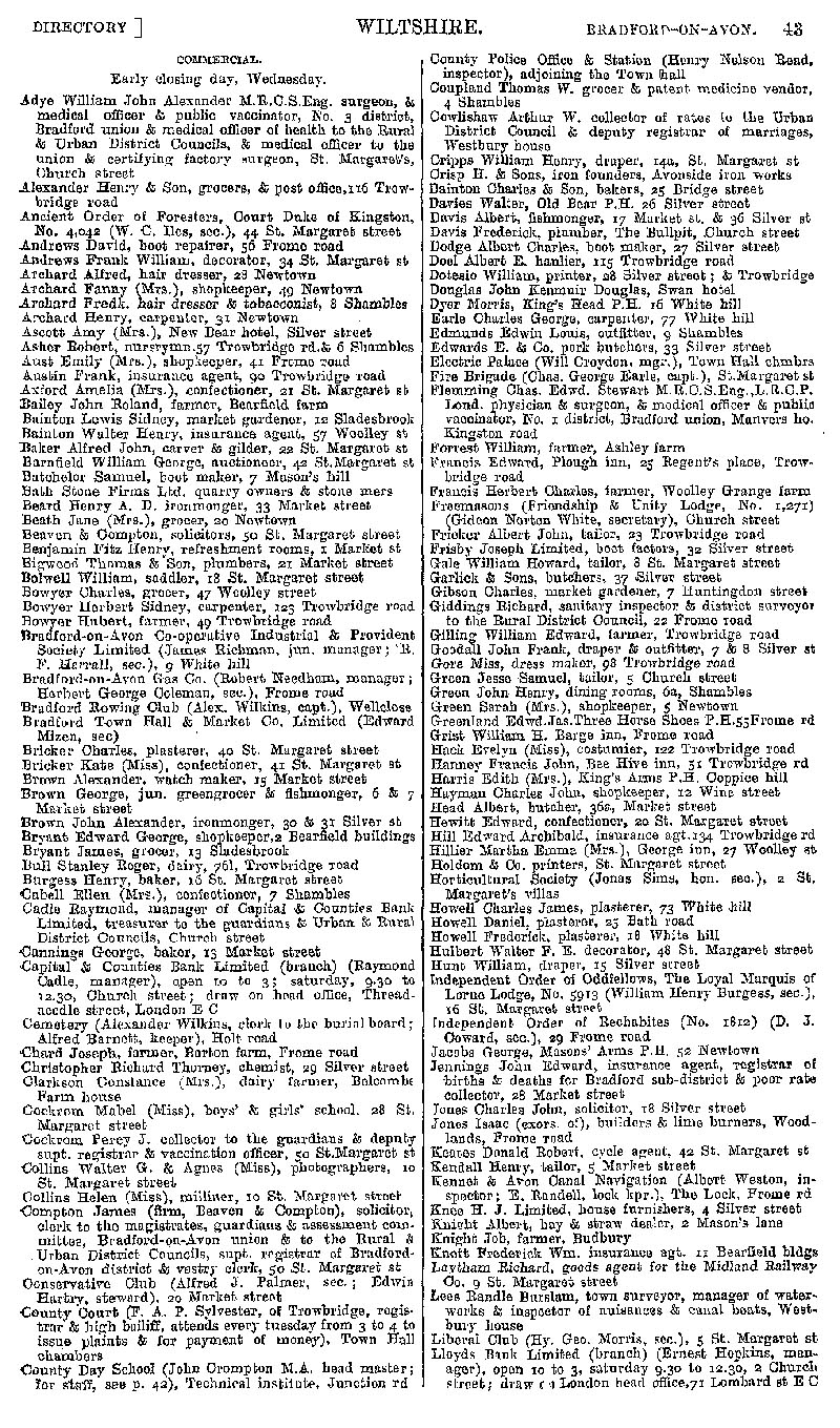 Page 23 Bradford on Avon; businesses from Adye to Lloyds.