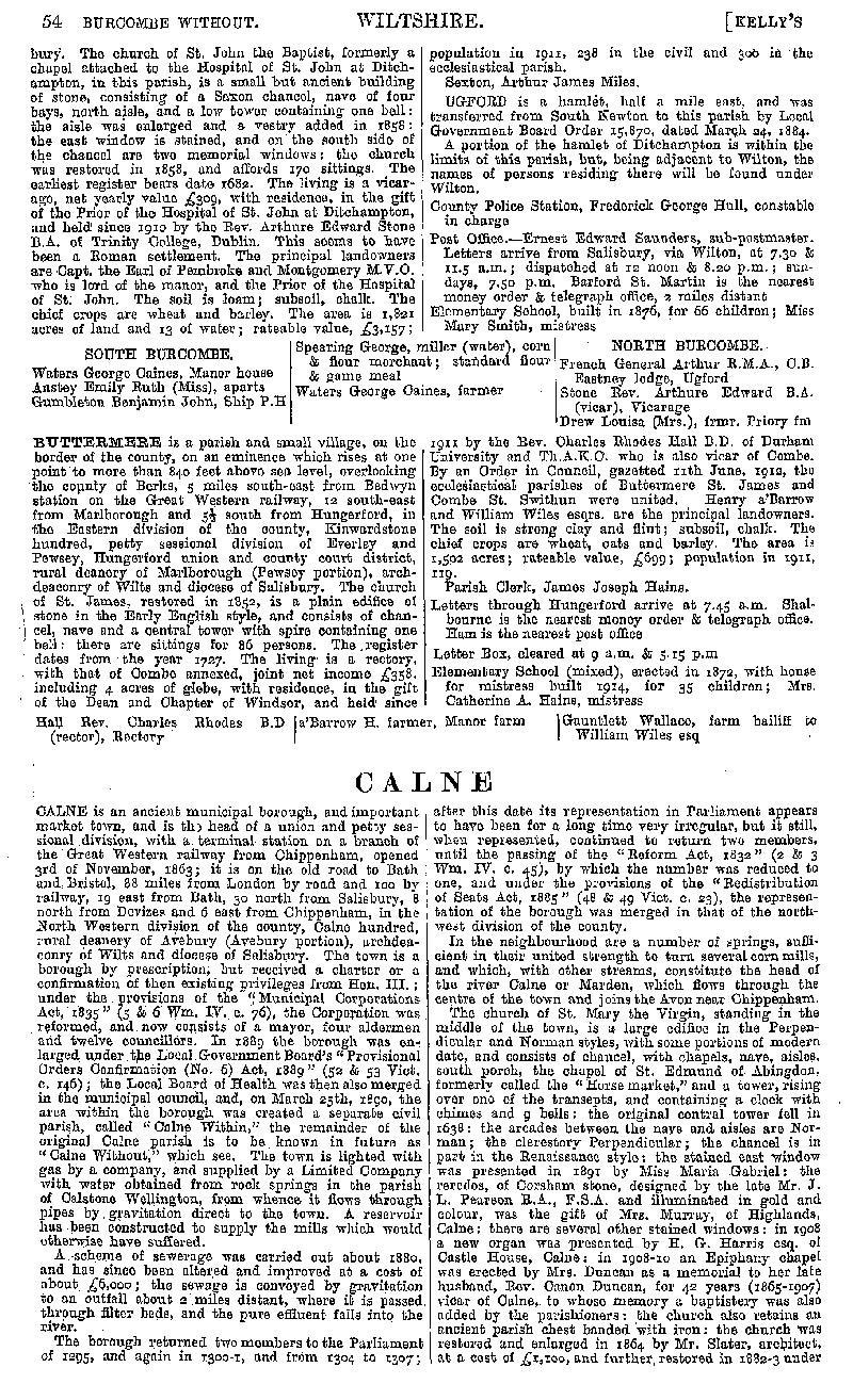 Page 34 Description and residents of Burcombe Without, and Buttermere. Calne; description, public works, Church of St. Mary.