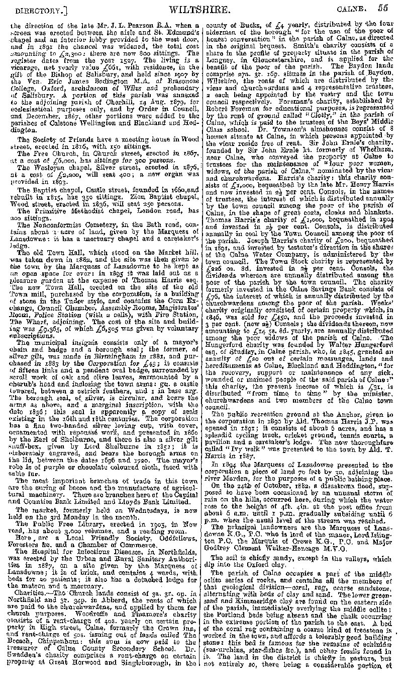 Page 35 Calne; Church of St. Mary, other churches and chapels, public buildings, charities, geology.