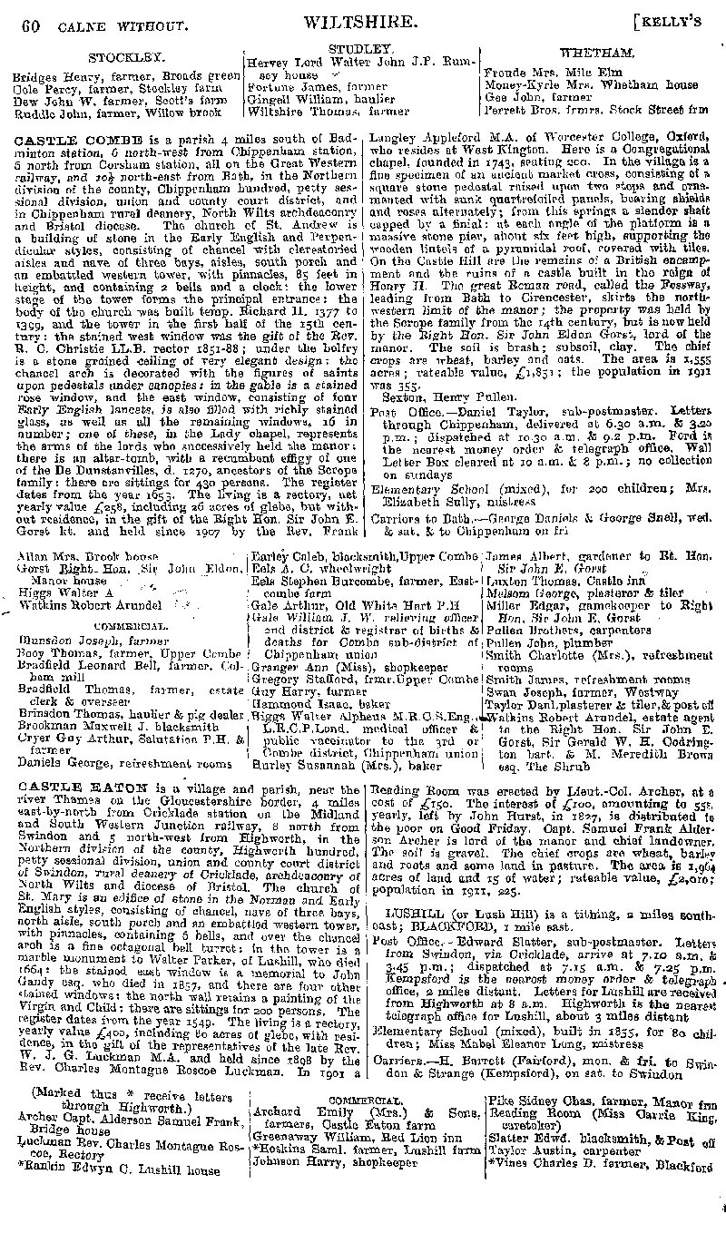 Page 40 Description and residents of Calne Without (Stockley, Studley and Whetham), Castle Combe, and Castle Eaton.