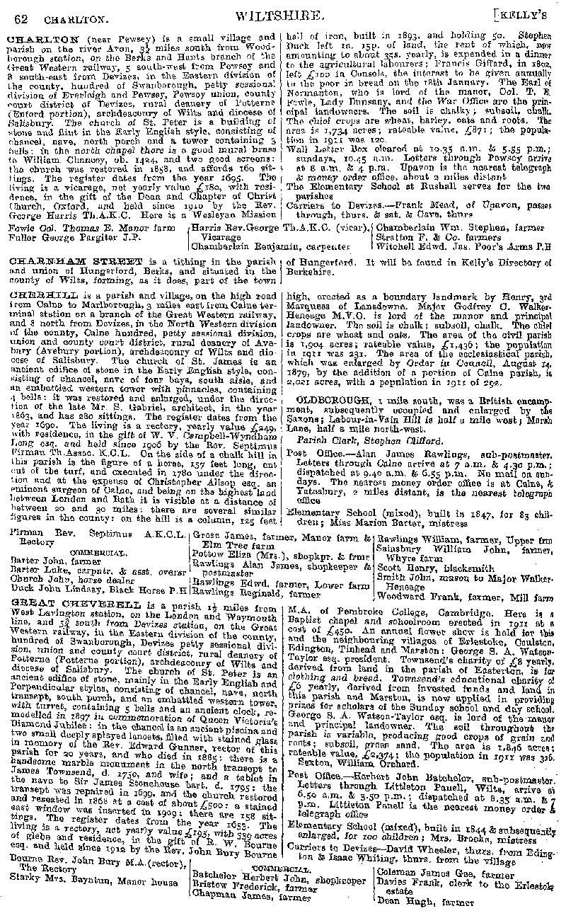 Page 42 Description and residents of Charlton (Vale of Pewsey), Cherhill, and Great Cheverell.