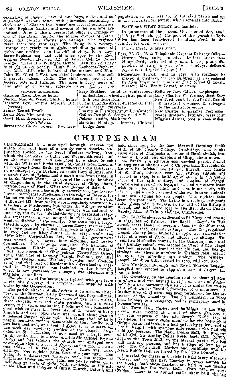 Page 44 Description and Chilton Foliat. Chippenham; borough history, Church of St. Andrew, other churches and chapels, public buildings.