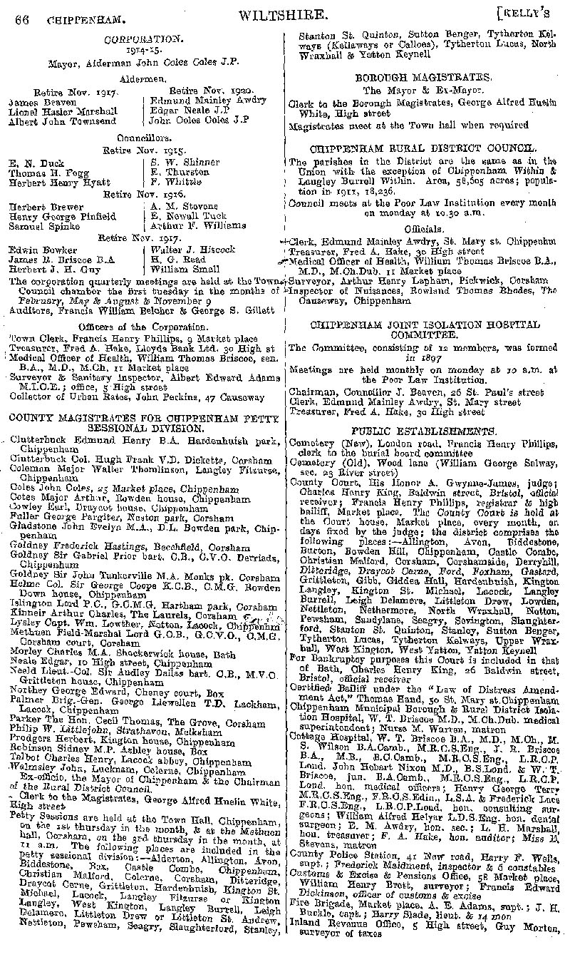 Page 46 Chippenham; official establishments and local institutions, councillors, magistrates.