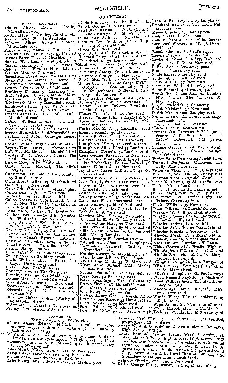 Page 48 Chippenham; private residents, businesses from Adams to Bailey.