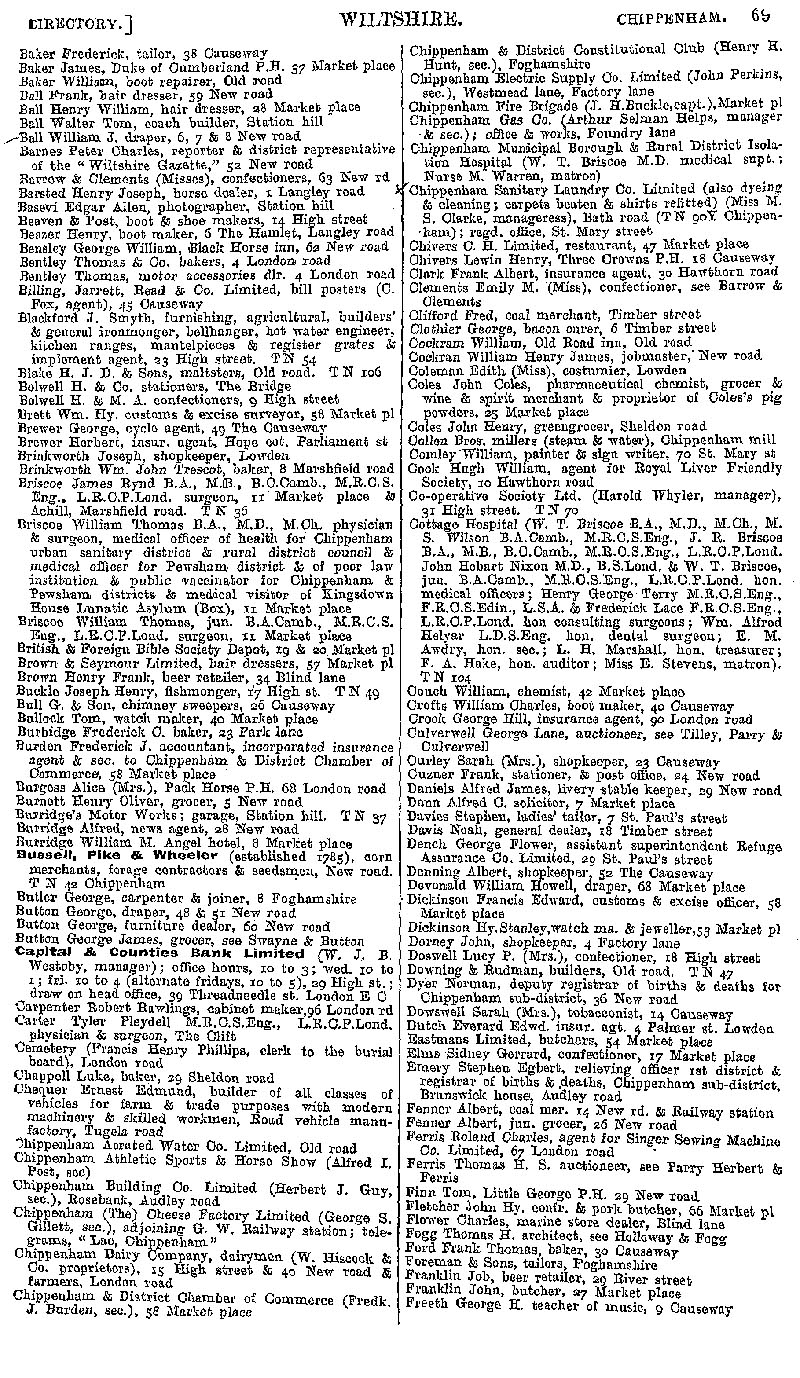 Page 49 Chippenham; businesses from Baker to Freeth.