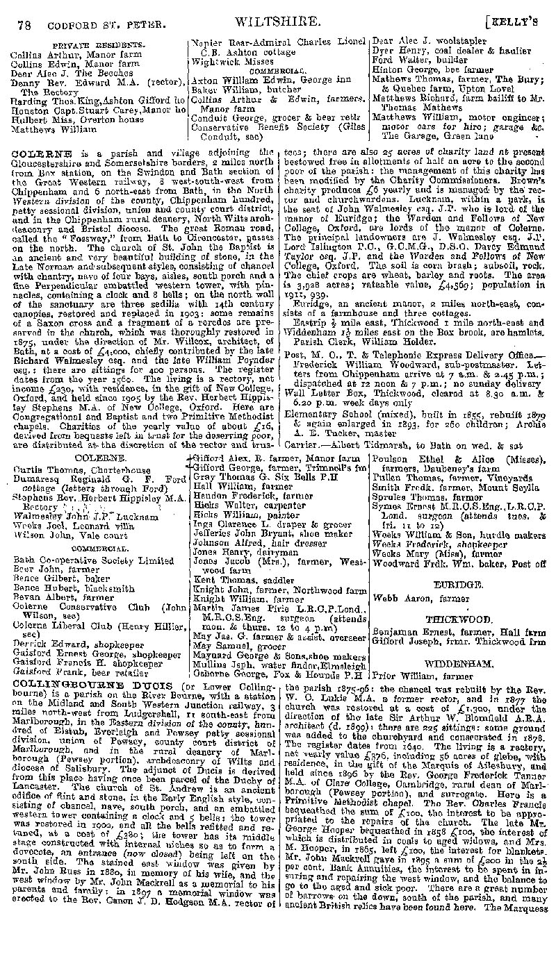 Page 58 Description and residents of Codford St. Peter, Colerne, and Collingbourne Ducis.