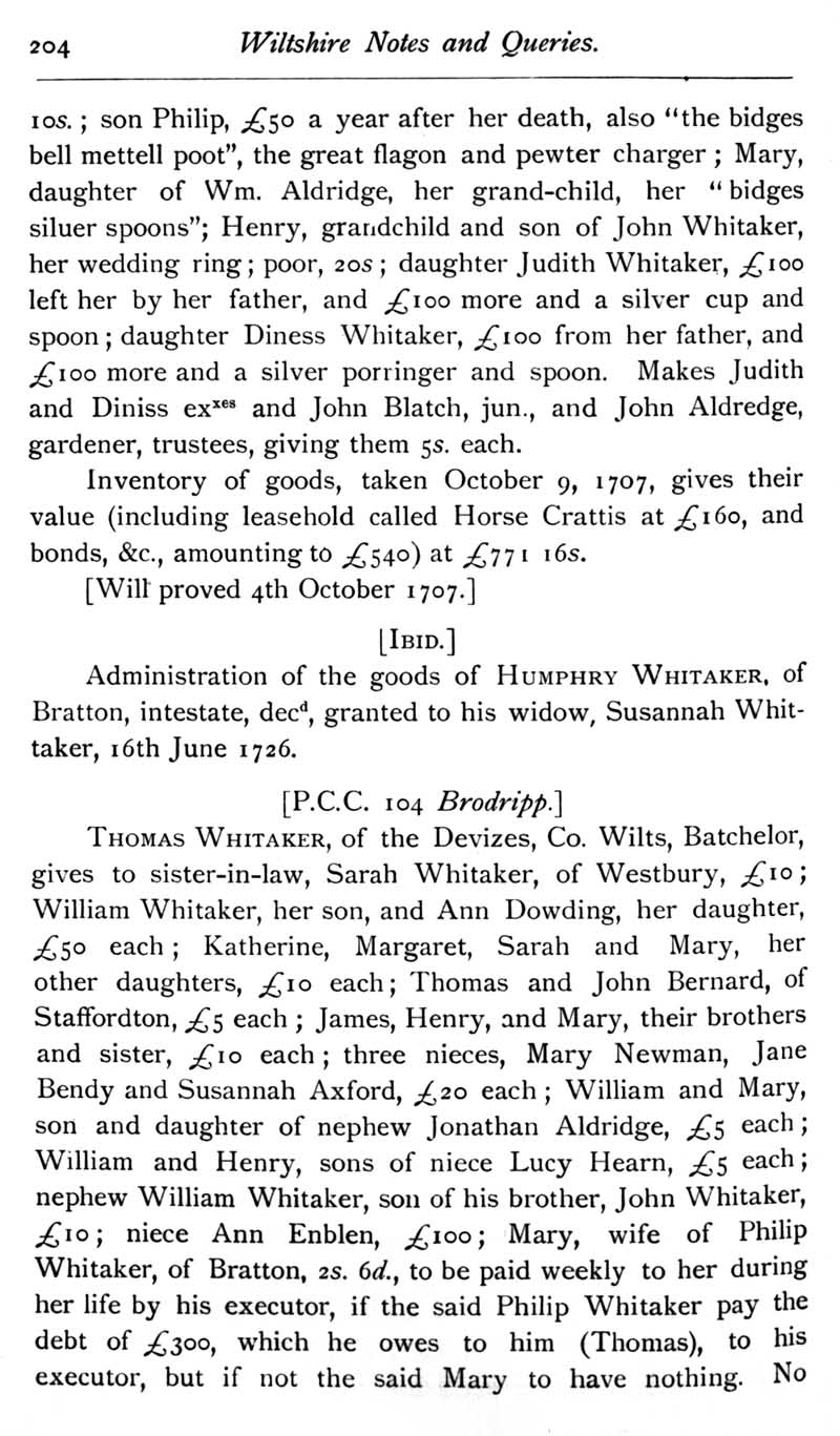 Chapter 6 Place House, Melksham; Records of Wiltshire Parishes; Quakerism in Wiltshire; Feet of Fines for Wiltshire; Bush Family; William Snow and Bradenstoek Priory; Geneaology; Melksham Common Rights; Cartularies of Wiltshire Abbeys and Monasteries; Queries; Repl