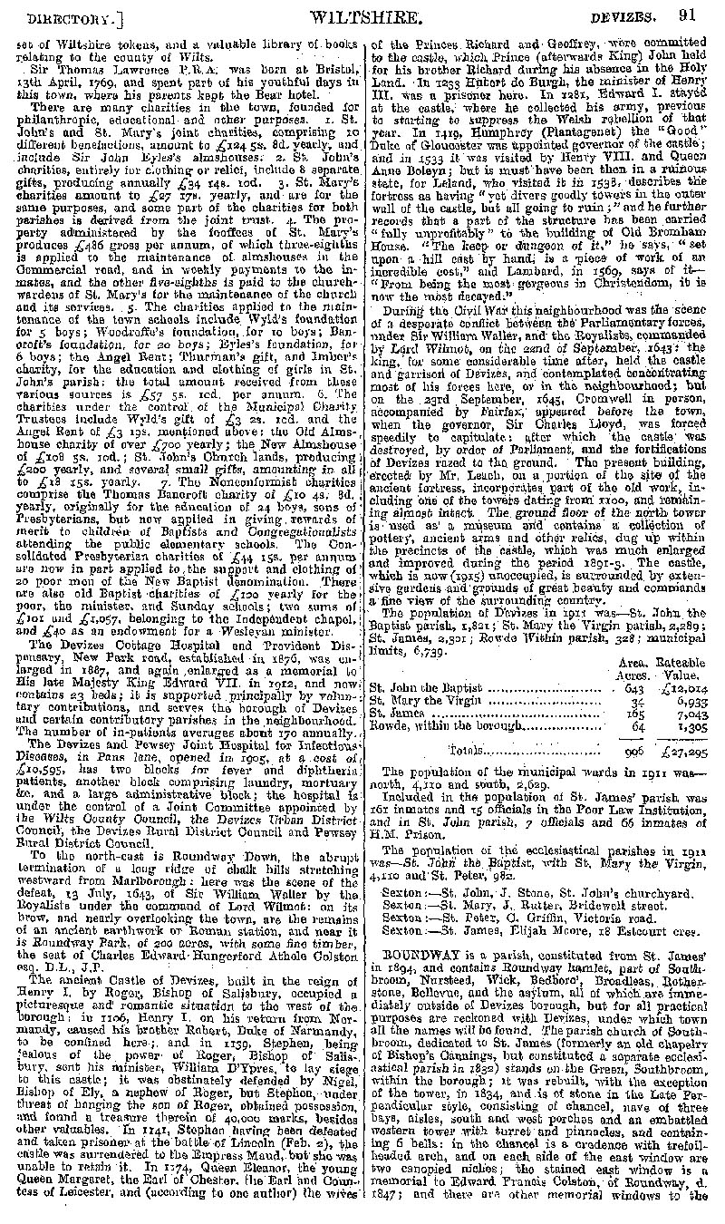 Page 71 Devizes; societies, charities, hospitals, antiquities, Civil War, population, Roundway.