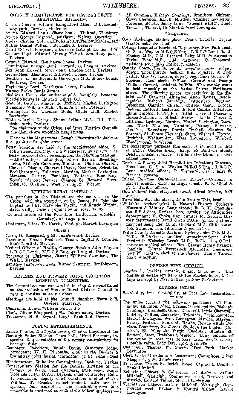 Page 73 Devizes; official establishments and local institutions, magistrates.