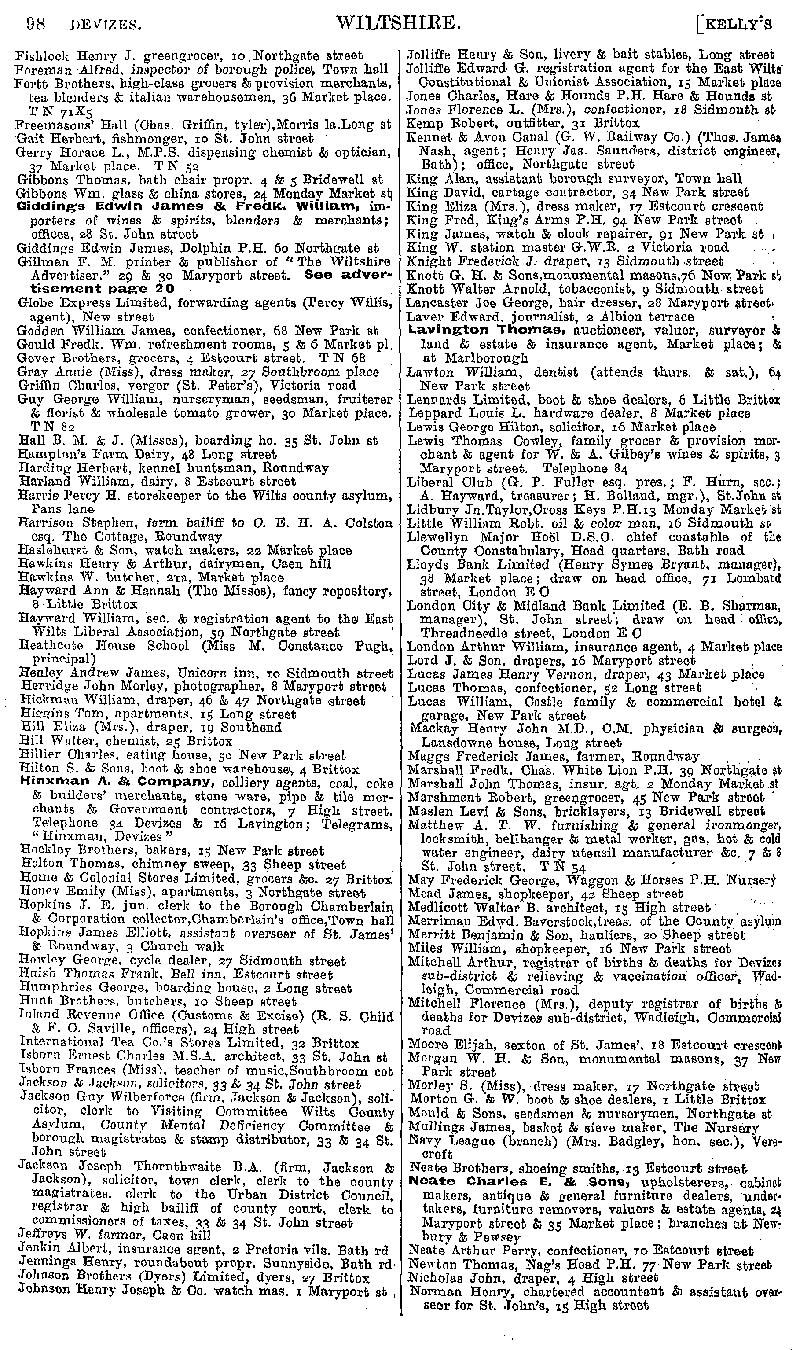 Page 78 Devizes; businesses from Fishlock to Norman.