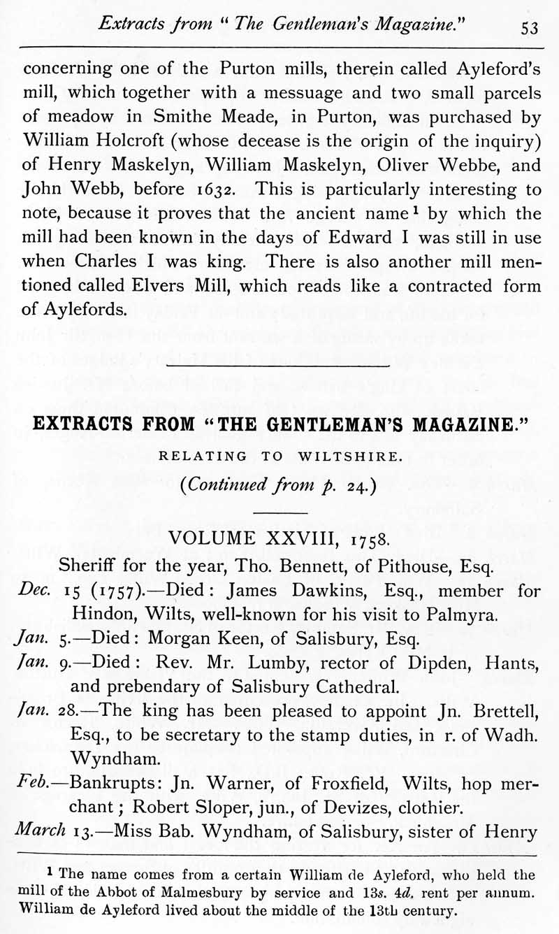 Page 6 Part of a history of Purton. Wiltshire people of 1758.