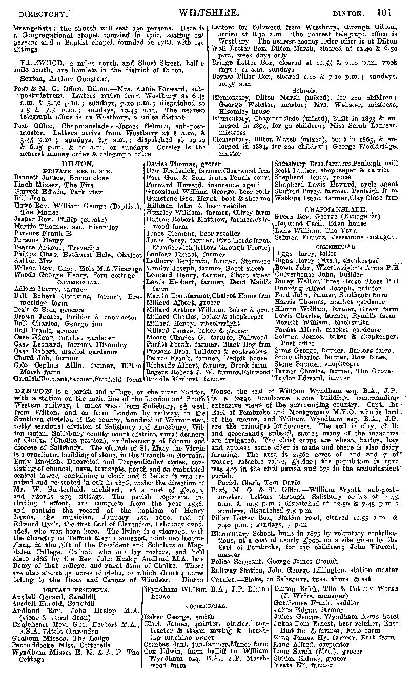Page 81 Description and residents of Dilton Marsh (including Chapmanslade), and Dinton.