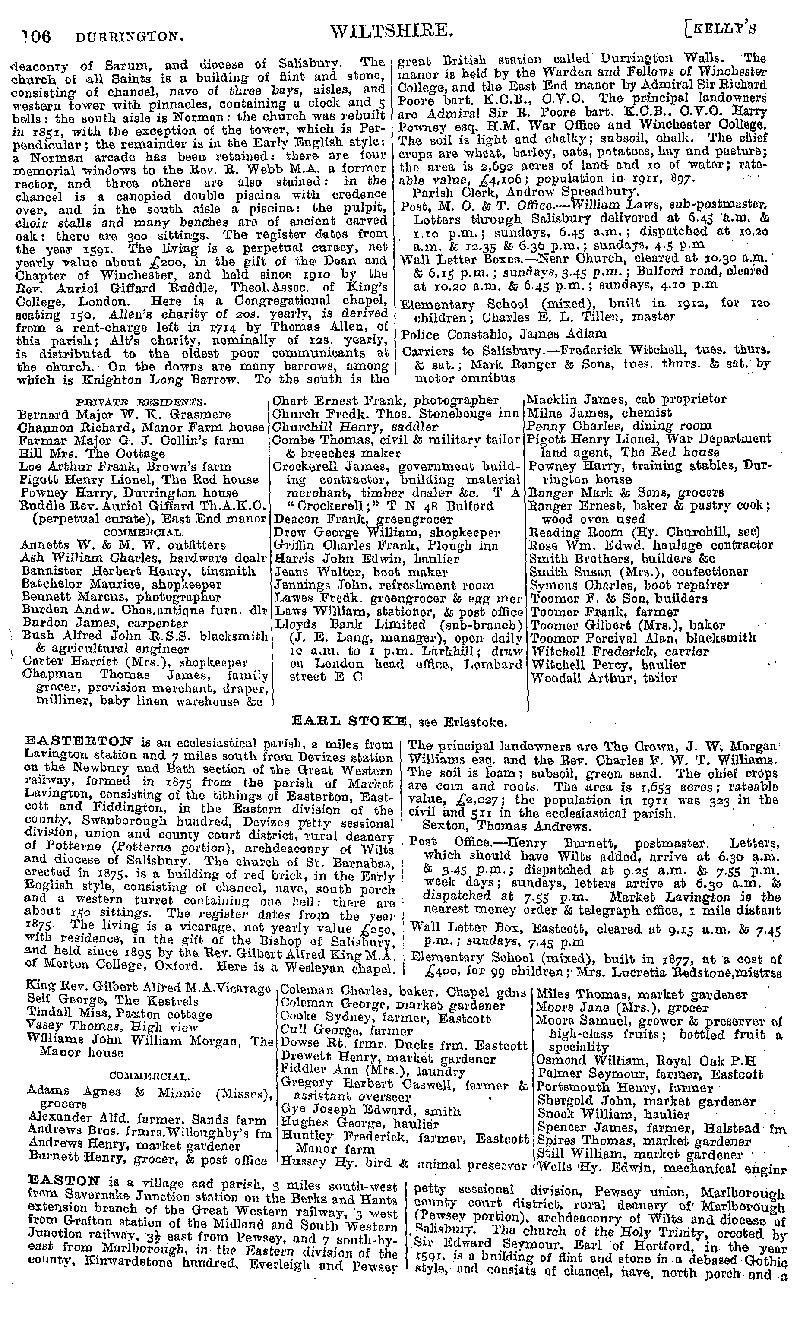 Page 86 Description and residents of Durrington, Easterton, and Easton Royal.