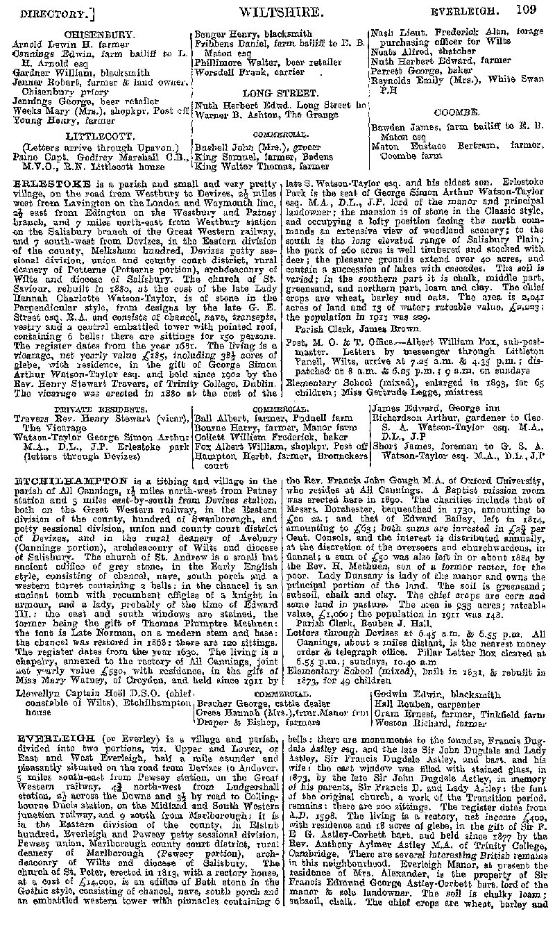 Page 89 Description and residents of Enford, Erlestoke, Etchilhampton and Everleigh.