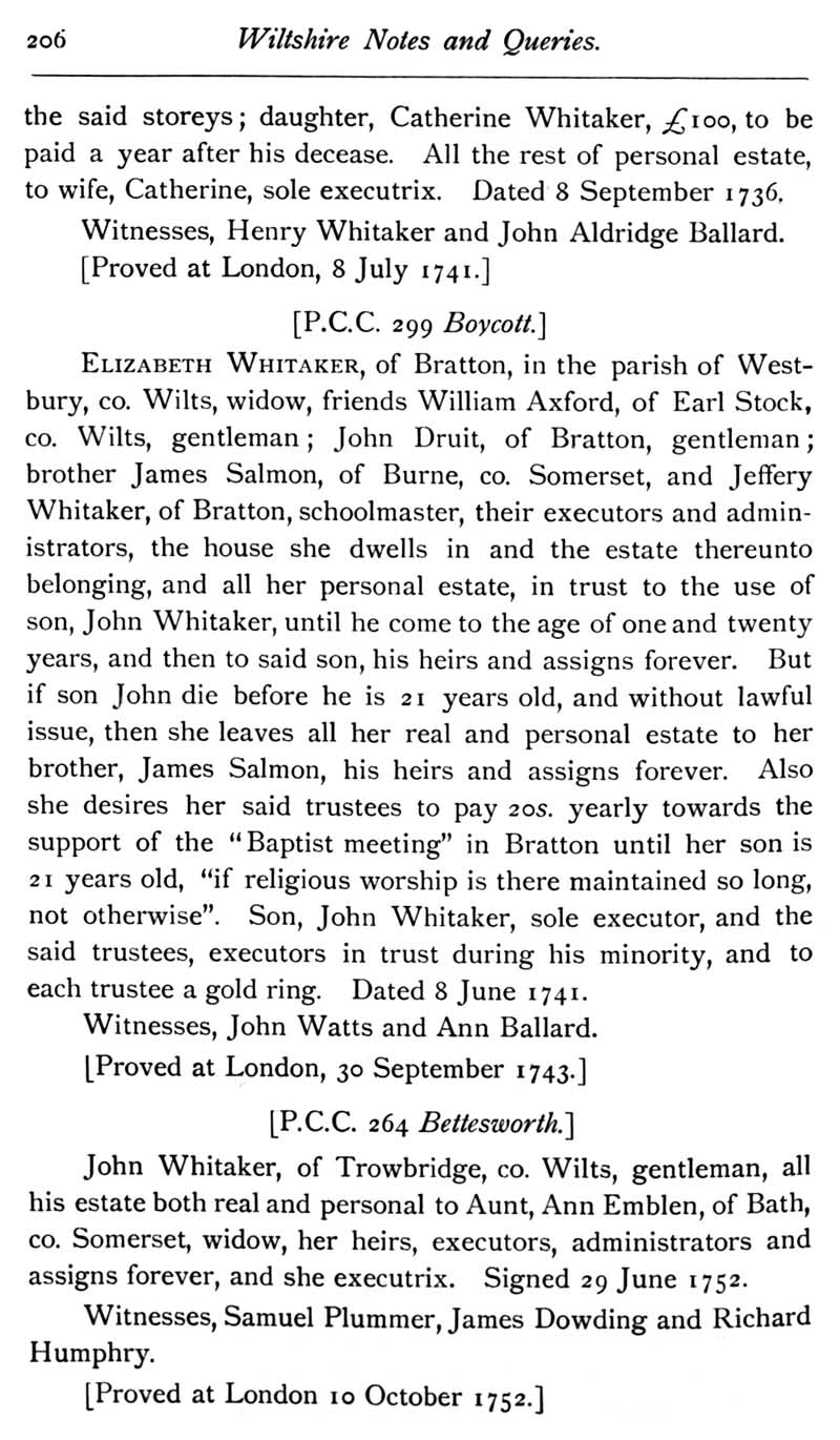 Chapter 6 Place House, Melksham; Records of Wiltshire Parishes; Quakerism in Wiltshire; Feet of Fines for Wiltshire; Bush Family; William Snow and Bradenstoek Priory; Geneaology; Melksham Common Rights; Cartularies of Wiltshire Abbeys and Monasteries; Queries; Repl