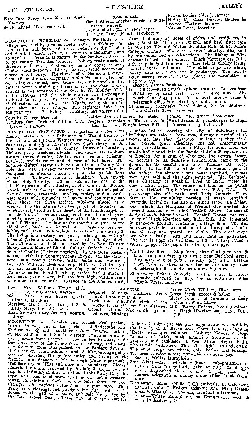 Page 92 Description and residents of Fittleton, Fonthill Bishop,Fonthill Gifford, and Fosbury.