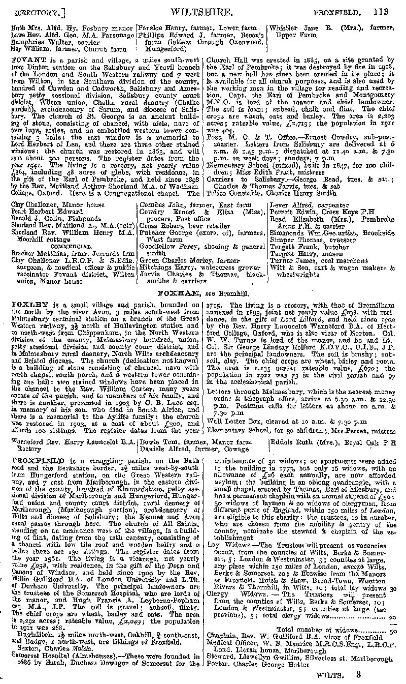 Page 93 Description and residents of Fosbury, Fovant, Foxley, and Froxfield.