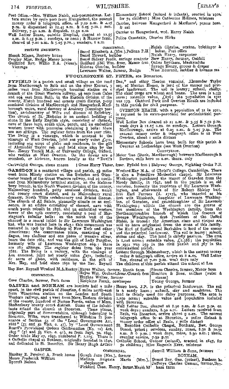 Page 94 Description and residents of Froxfield, Fyfield, Garsdon (Lea and Cleverton), Gaspar and Bonham (Stourton with Gaspar).