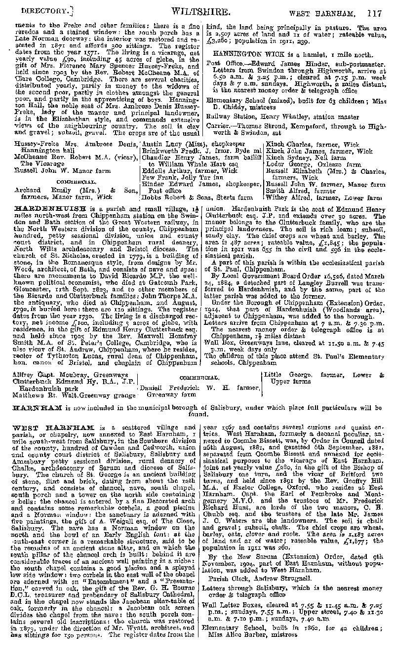 Page 97 Description and residents of Hannington, Hardenhuish (Chippenham), and West Harnham (Salisbury).