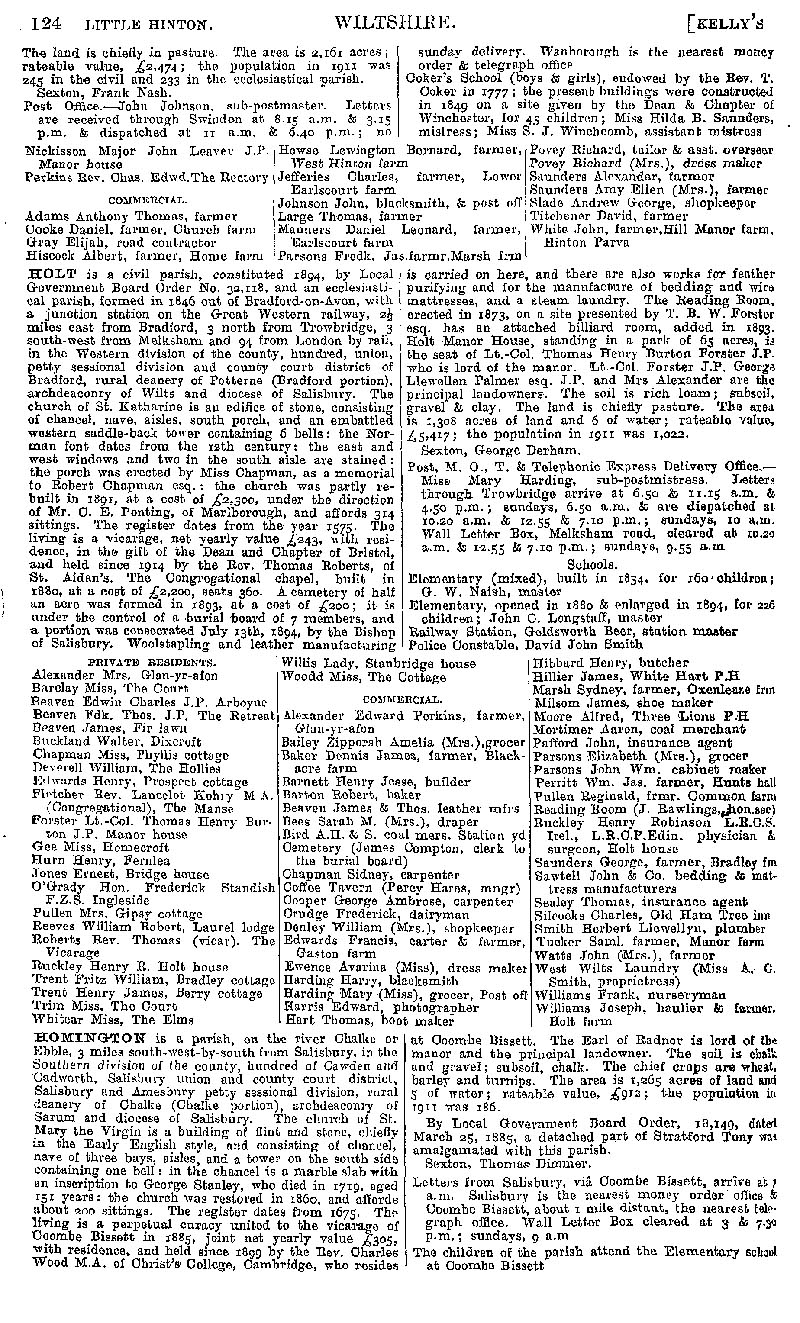 Page 104 Description and residents of Little Hinton,, Holt and Homington.
