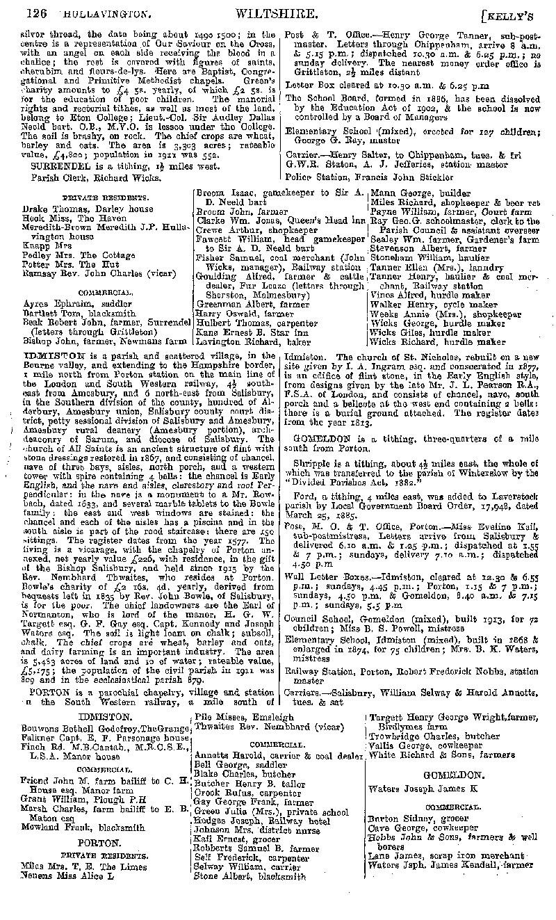 Page 106 Description and residents of Hullavington, and Idmiston (including Porton and Gomeldon).