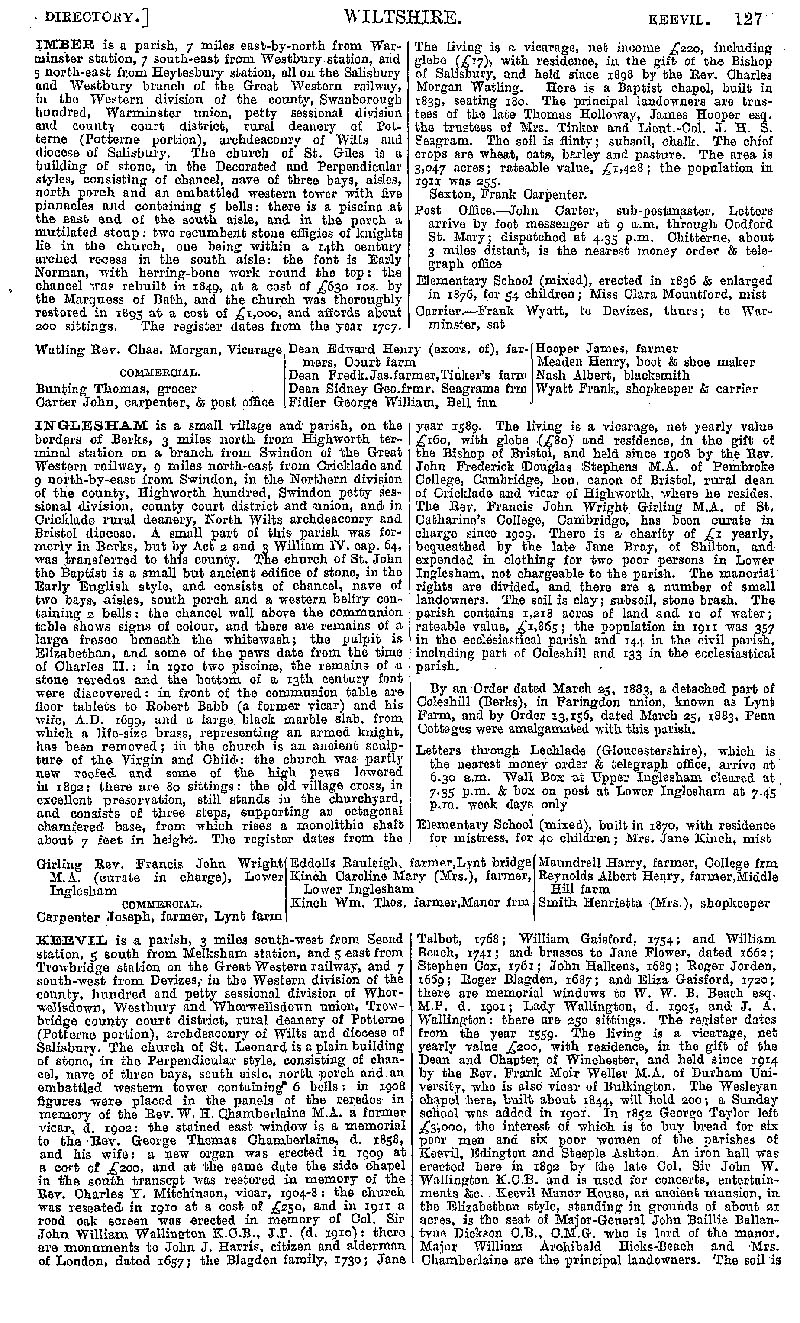 Page 107 Description and residents of Imber, Inglesham, and Keevil.