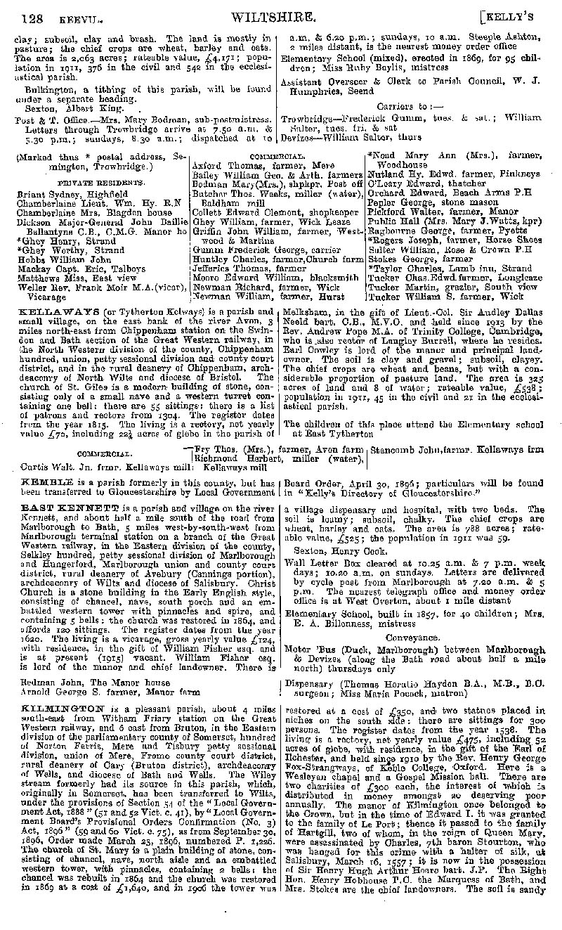 Page 108 Description and residents of Keevil, Kellaways (Langley Burrell Without), East Kennett, and Kilmington.