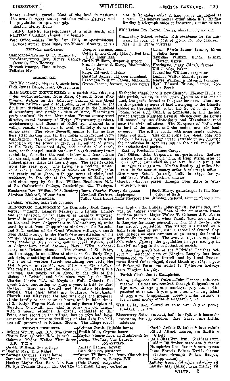 Page 109 Description and residents of Kilmington, Kingston Deverill, and Kington Langley.