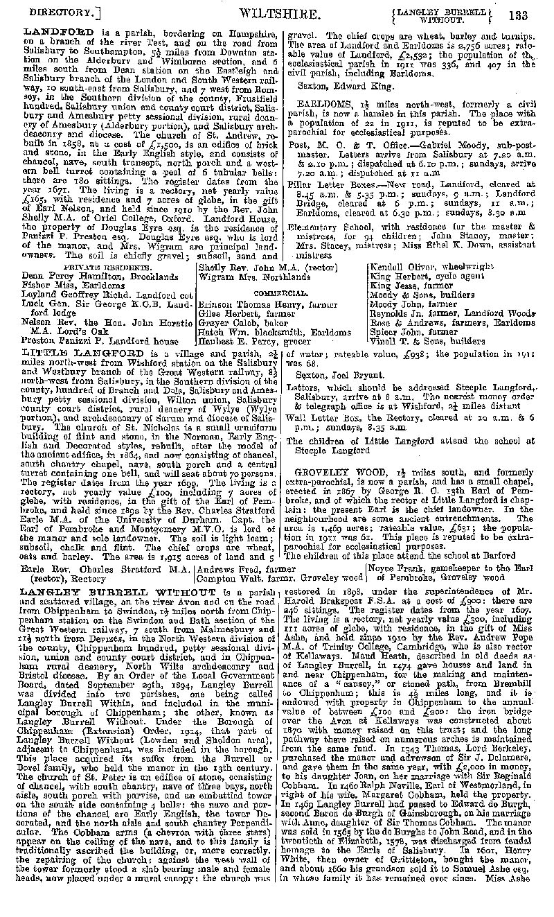 Page 113 Description and residents of Landford, Little Langford, and Langley Burrell Without.
