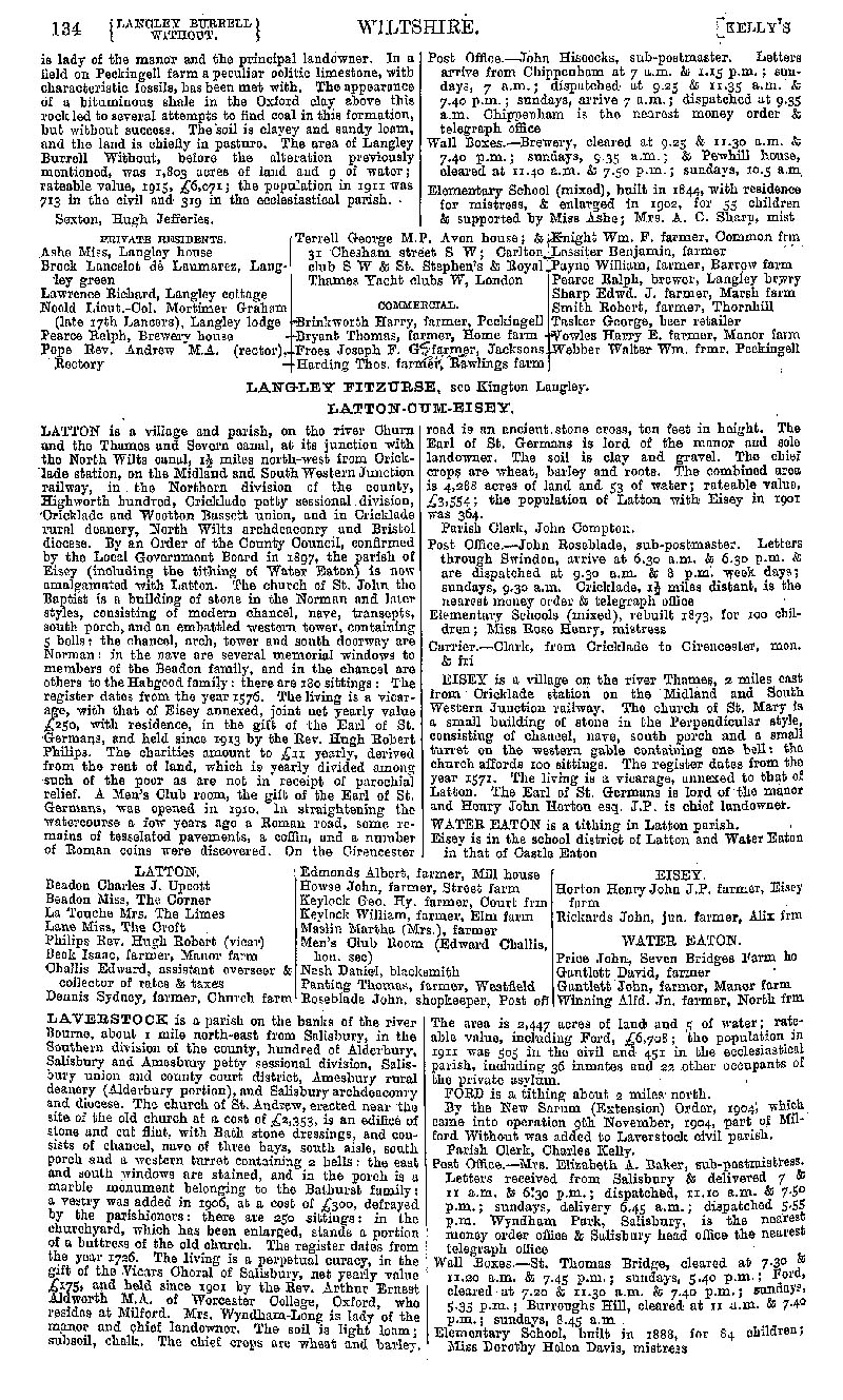 Page 114 Description and residents of Langley Burrell Without, Latton with Eisey, and Laverstock.
