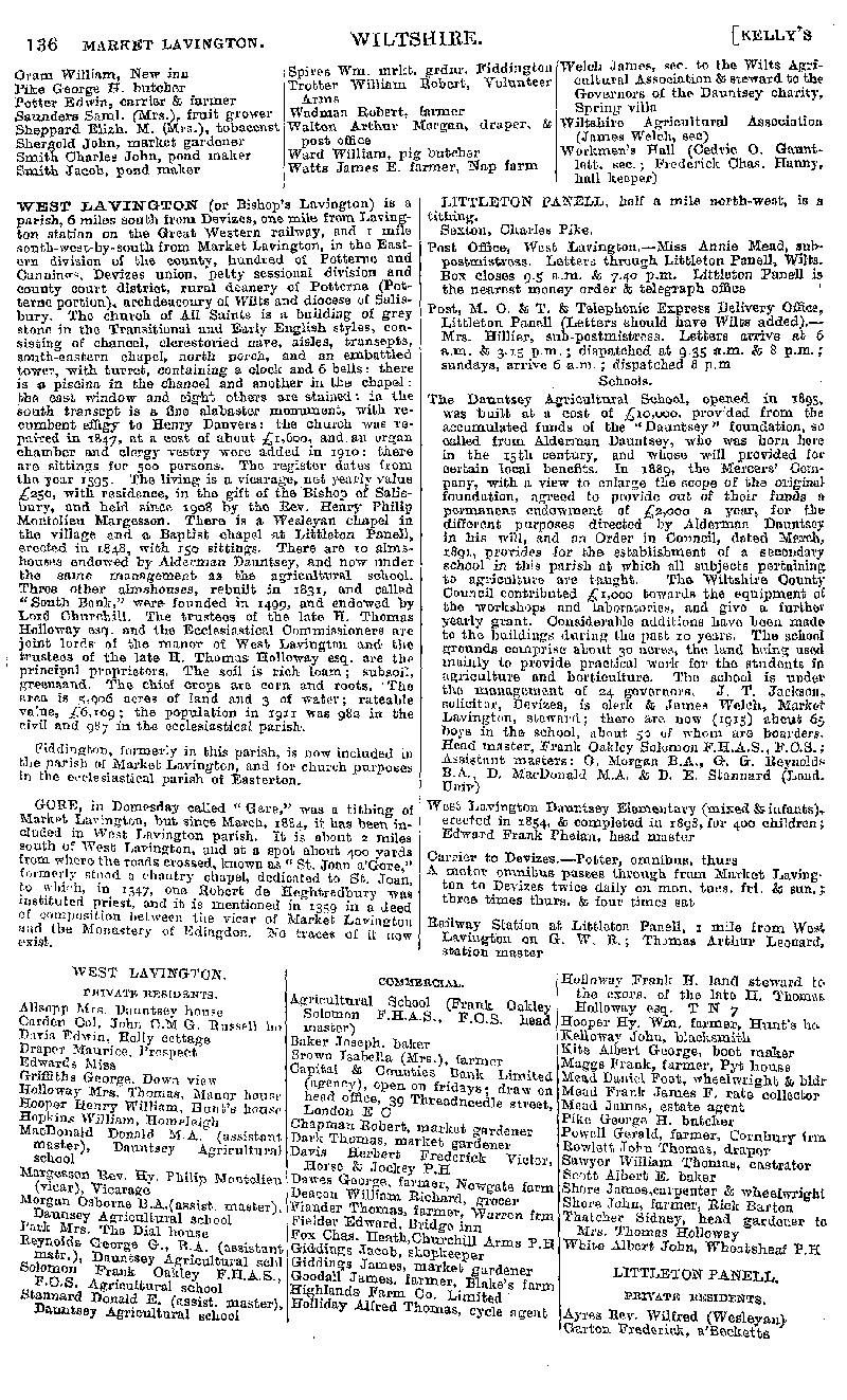 Page 116 Description and residents of Market Lavington, and West Lavington (including Littleton Panell).