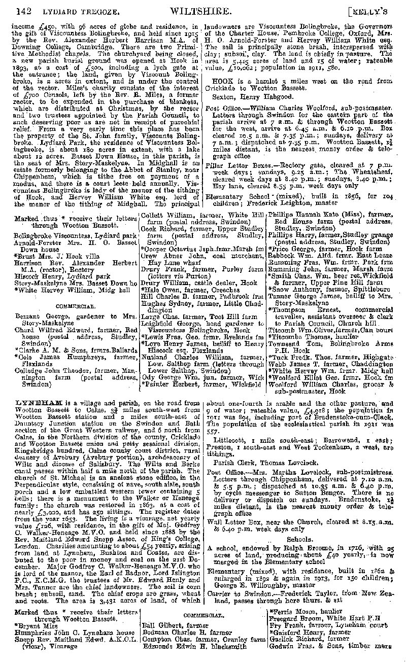 Page 122 Description and residents of Lydiard Tregoze, and Lyneham.