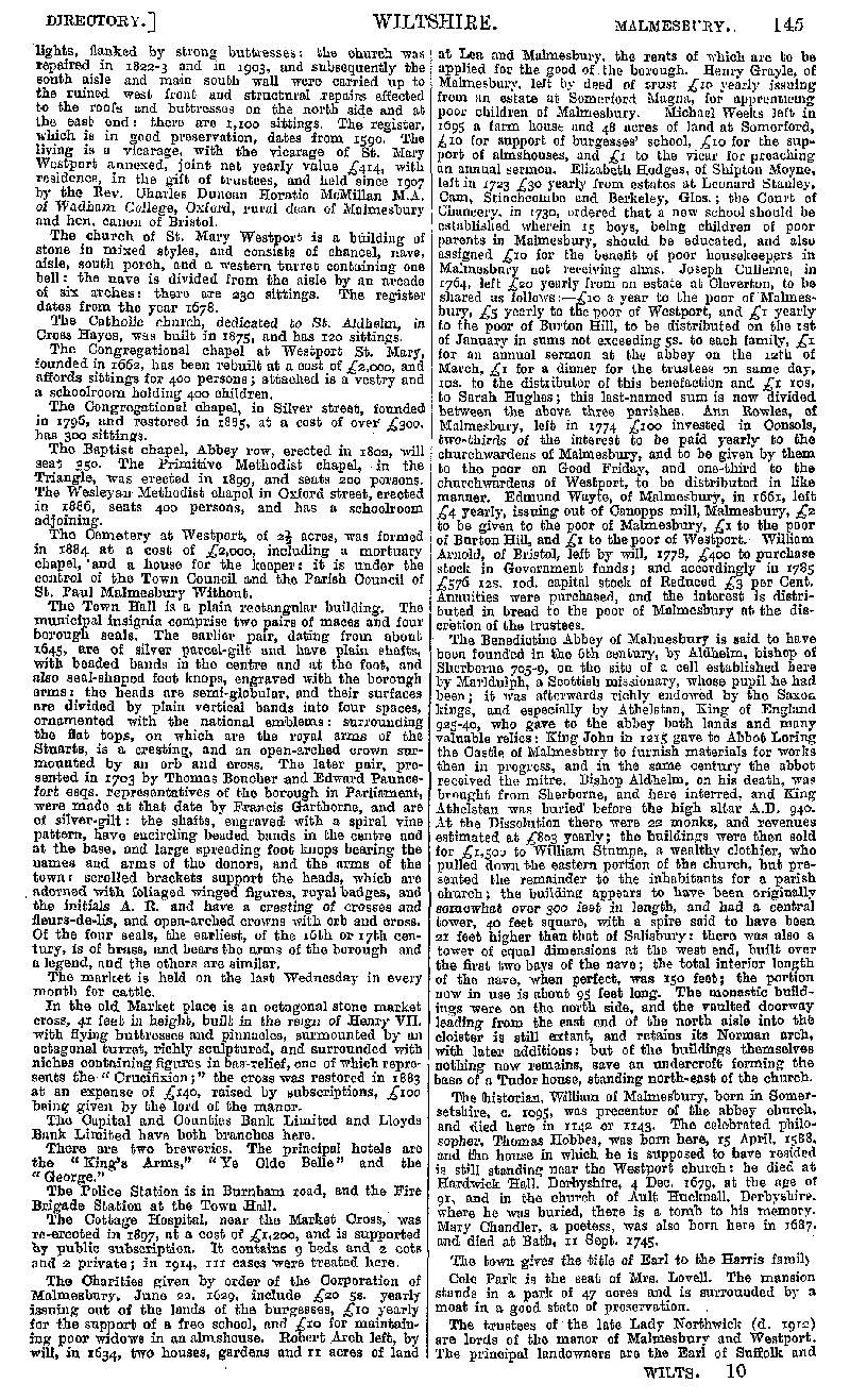 Page 125 Malmesbury with Westport St. Mary; the abbey, churches and chapels, public buildings, charities.