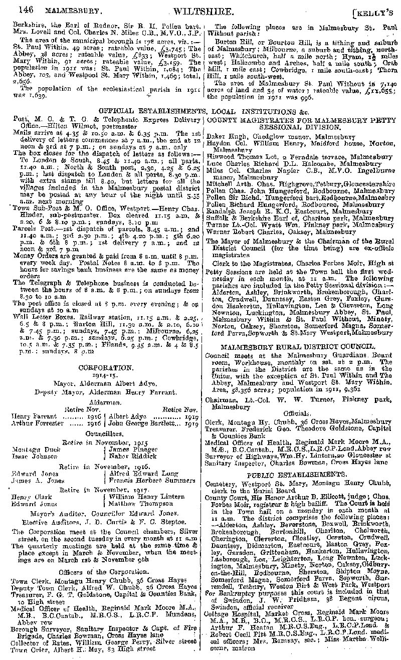 Page 126 Malmesbury with Westport St. Mary; official establishments and local institutions, councillors and magistrates.