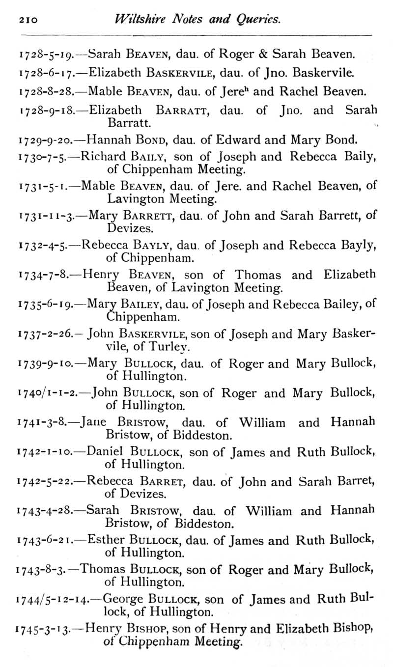 Chapter 6 Place House, Melksham; Records of Wiltshire Parishes; Quakerism in Wiltshire; Feet of Fines for Wiltshire; Bush Family; William Snow and Bradenstoek Priory; Geneaology; Melksham Common Rights; Cartularies of Wiltshire Abbeys and Monasteries; Queries; Repl