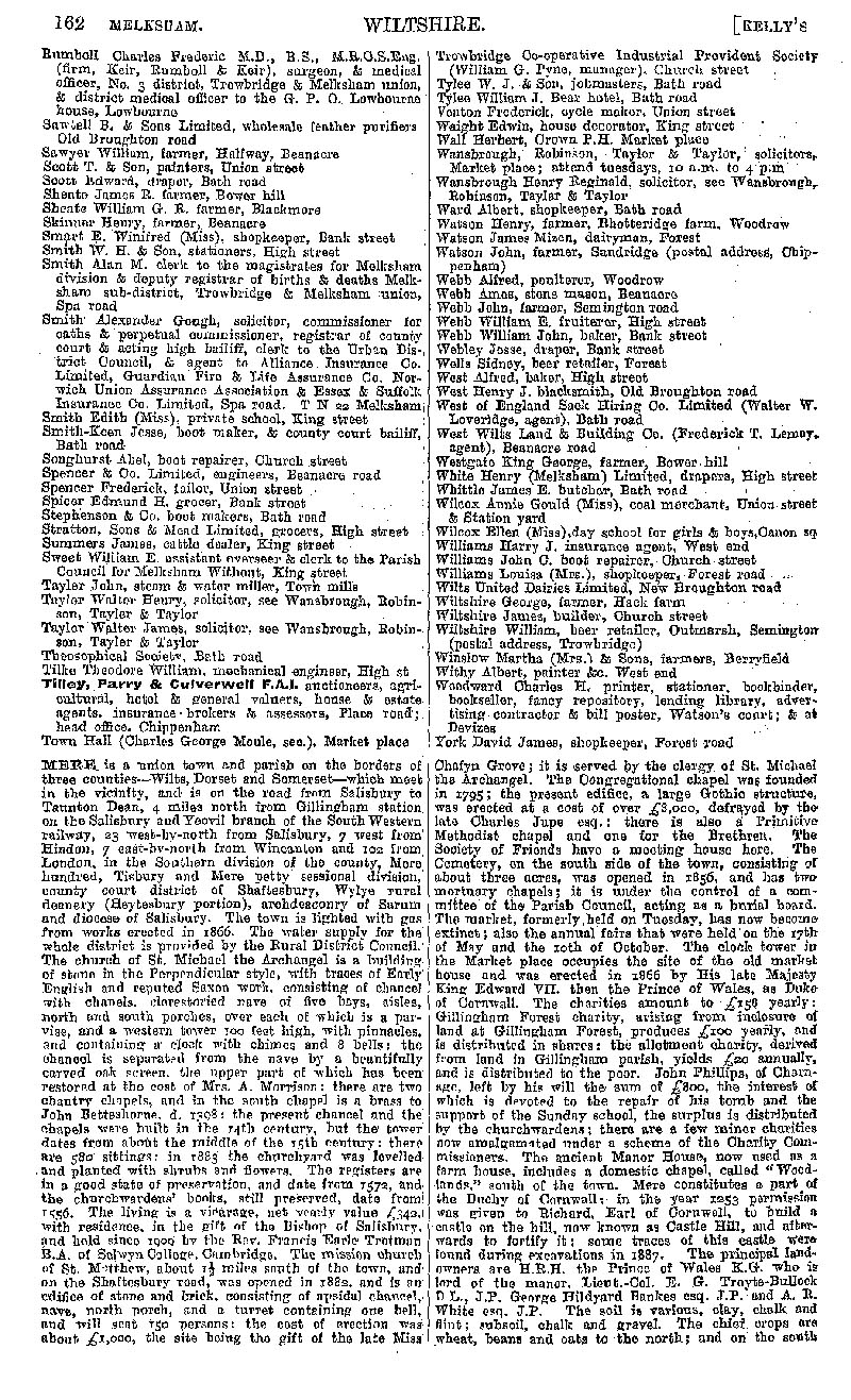Page 142 Melksham; businesses from Rumboll to York. Description and residents of Mere.