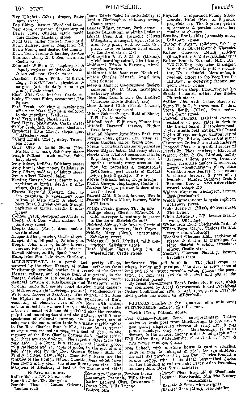 Page 144 Description and residents of Mere, and Mildenhall.