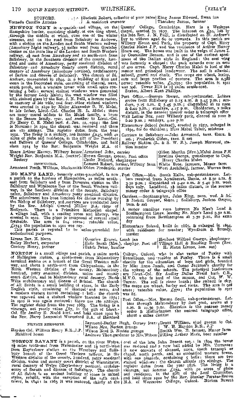 Page 150 Description and residents of South Newton, Newton Tony, Nomansland (Redlynch), Norton, and Norton Bavant.