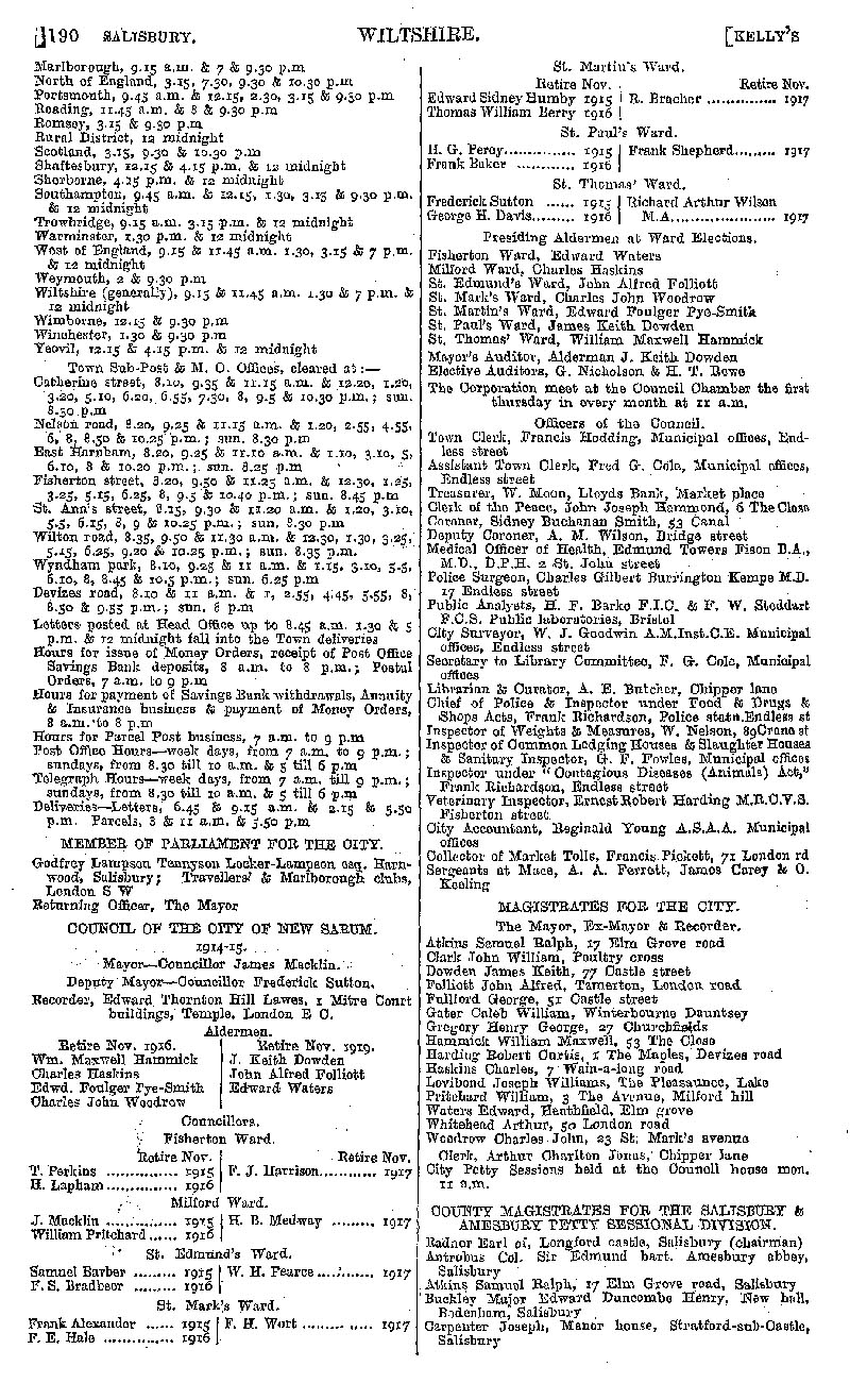 Page 170 Salisbury; official establishments and local institutions, councillors, magistrates.