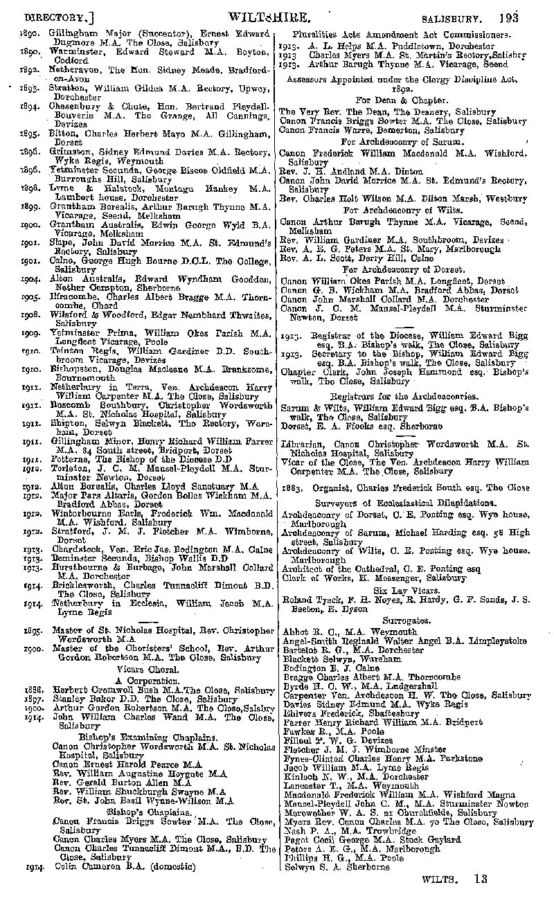 Page 173 Salisbury; official establishments and local institutions, diocese of Salisbury.