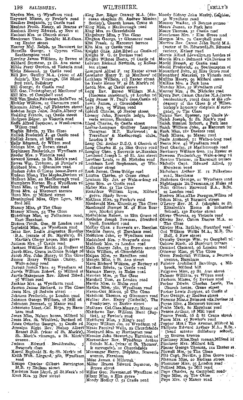 Page 178 Salisbury; private residents from Hayden to Pope.