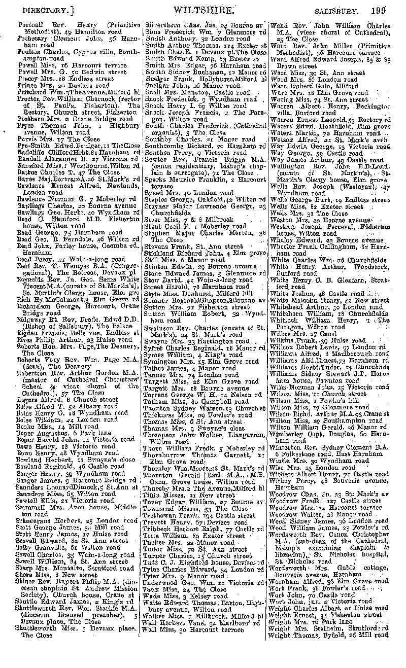 Page 179 Salisbury; private residents from Portnall to Wright.