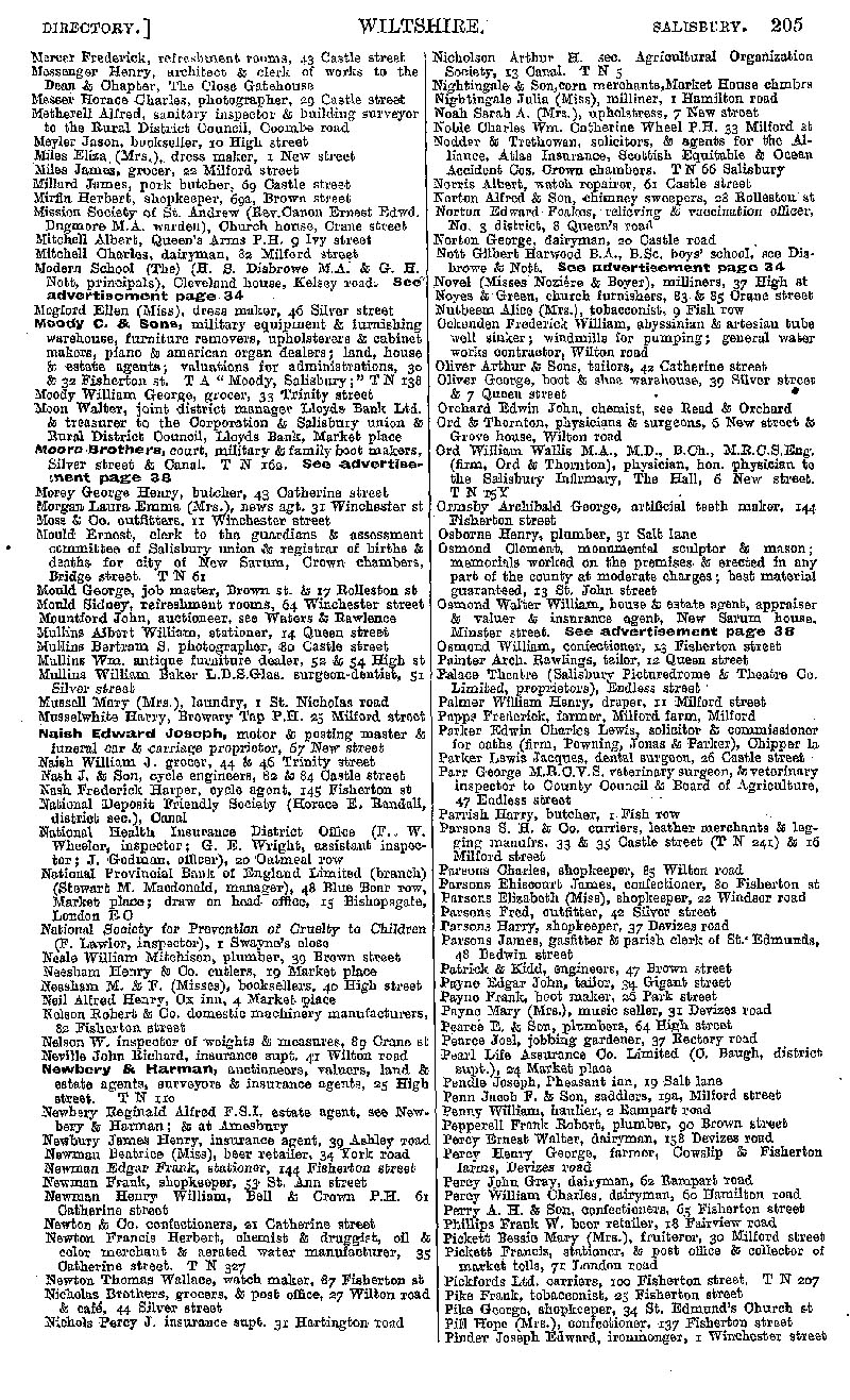 Page 185 Salisbury; businesses from Mercer to Pinder.