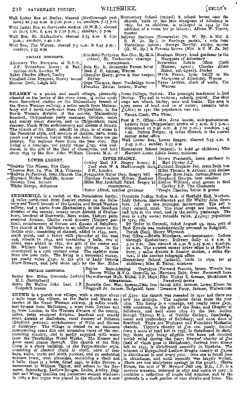 Page 190 Description and residents of Savernake Forest, Seagry, Sedgehill, and Seend.