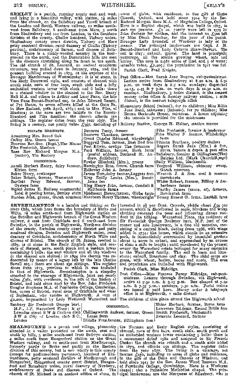 Page 192 Description and residents of Semley, Sevenhampton (Highworth), and Shalbourne.