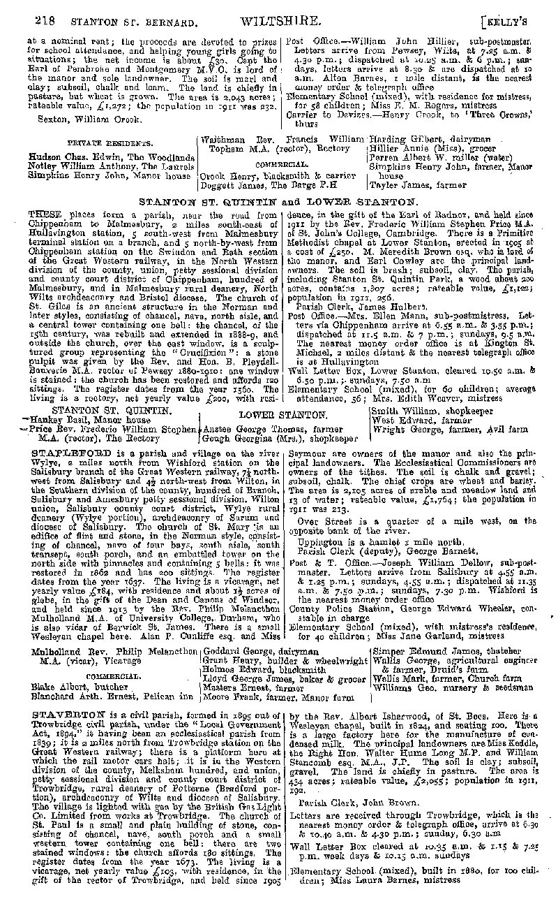 Page 198 Description and residents of Stanton St. Bernard, Stanton St. Quintin, Stapleford and Staverton.