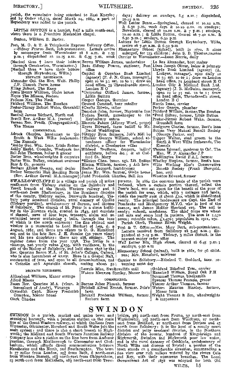 Page 205 Description and residents of Sutton Veny, and Swallowcliffe. Swindon; description.