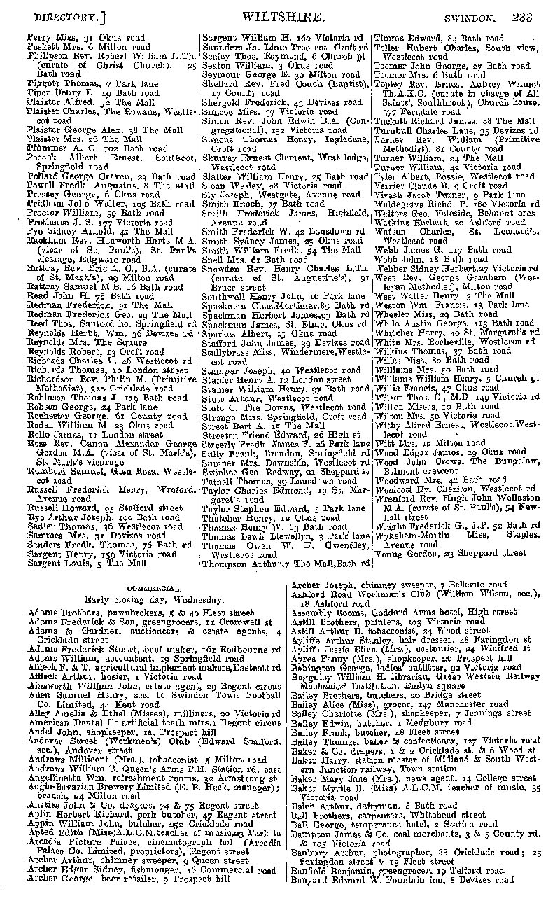 Page 213 Swindon; private residents from Perry to Young, businesses from Adams Brothers to Banyard.