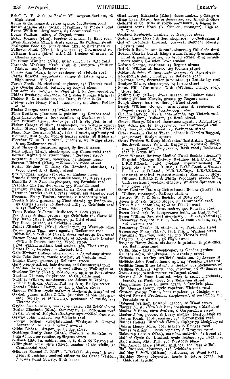 Page 216 Swindon; businesses from Eskell to Halliday.